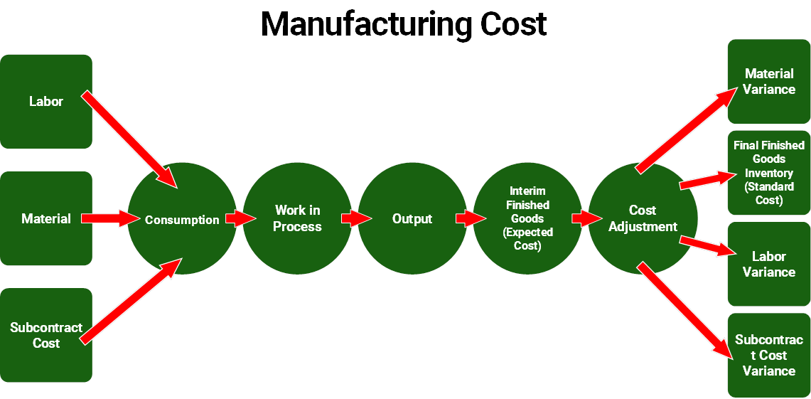 Actual Costs are posted to the production order and can be compared to the production order’s expected cost to see variance. If Item has Costing Method = Standard, then any variances will be posted to the general Ledger when the production order finishes.