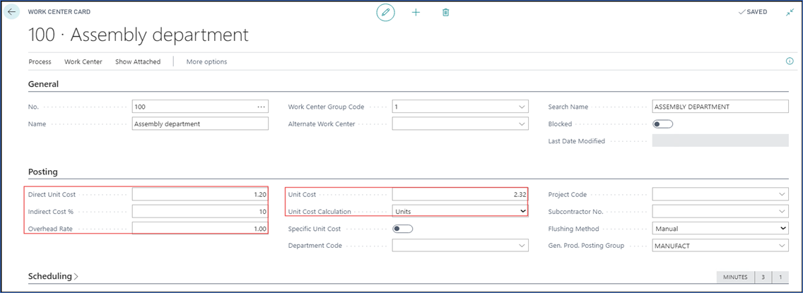 Set up these direct, Indirect and Overhead costs for each work or machine center.