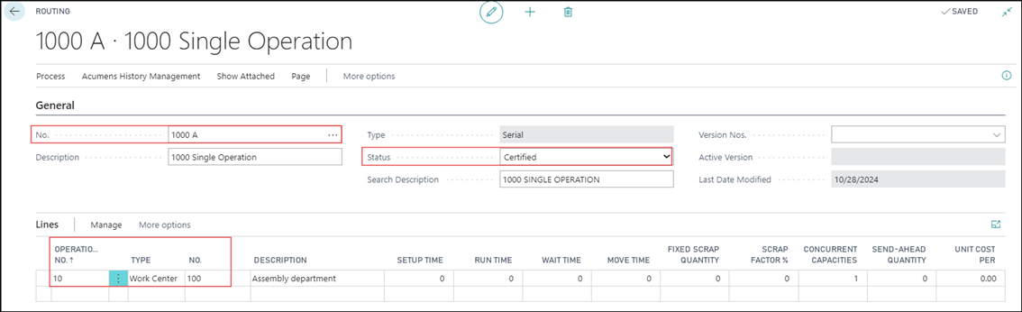 Create Routing using Work Centre created in above setup. Assign this newly created Routing to Item.