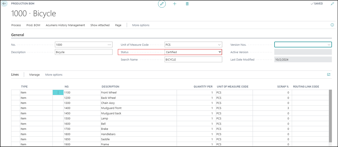 Certain Raw material is scrapped while producing a finished item. Set up Scrap% for Materials on either the production BOM or Routing to include in Material Cost.